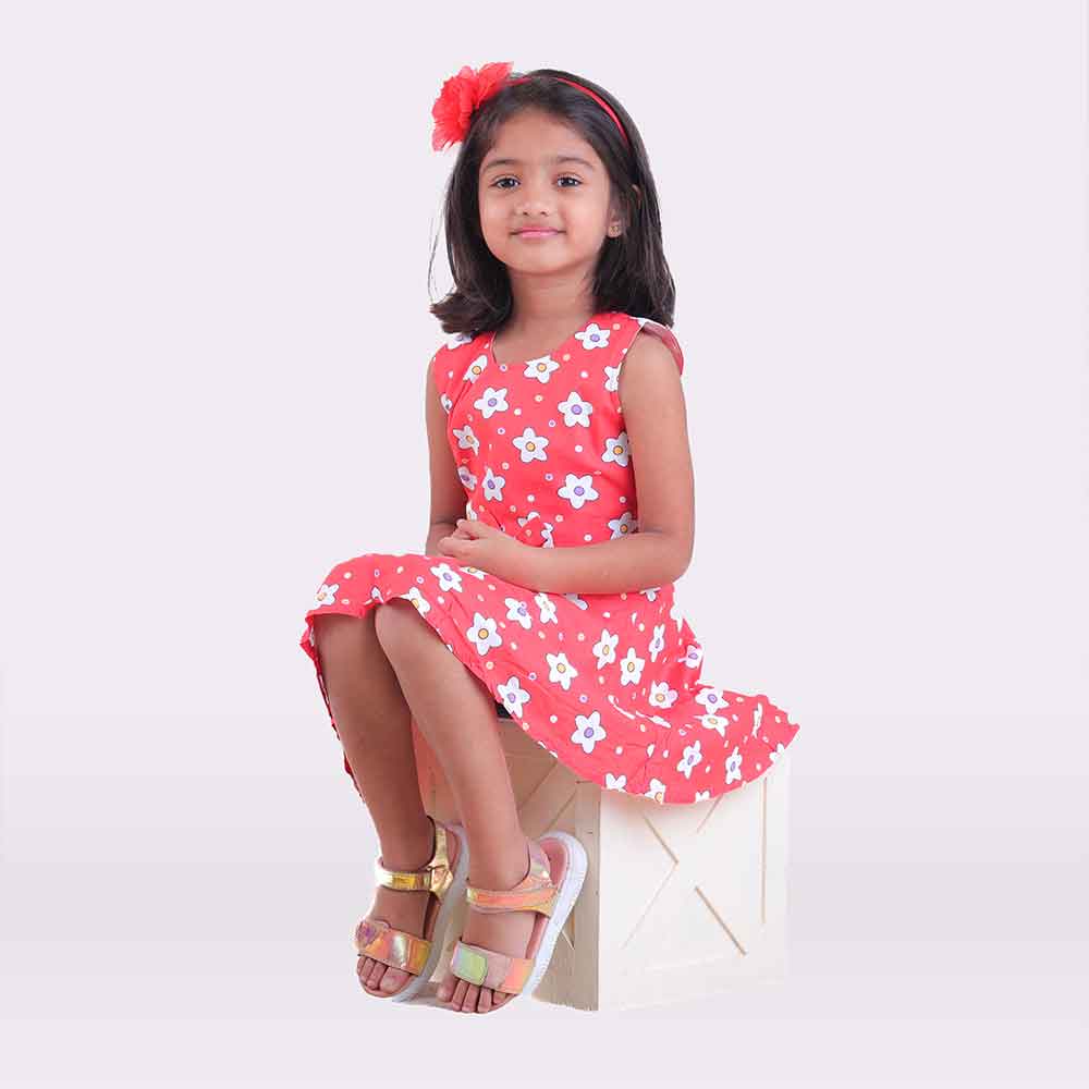 Girls Floral Printed Cotton Fit and Flare Dress
